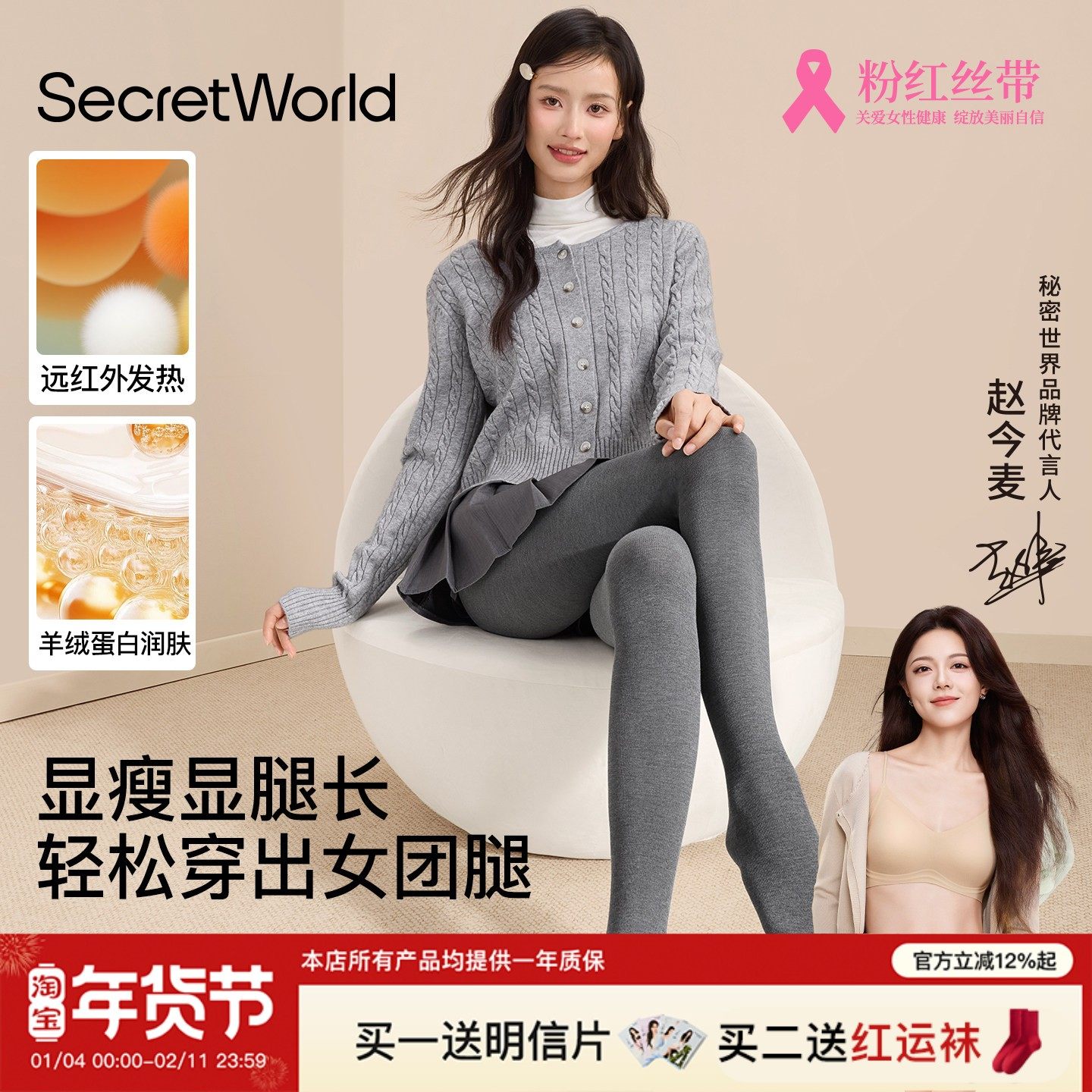 【Yang Mi's same style】Kazuko Ono Leggings Women's 2025 New Gray Wool Pantyhose Plus Fleece Winter Wear
