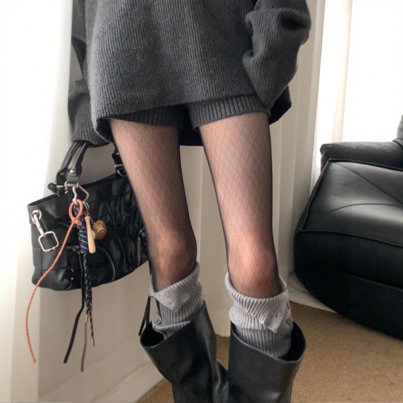 Lingge Hesi is the heartthrob of the hot girl world! Fine mesh diamond lattice + sock cover retro lazy ~ slim and temperamental