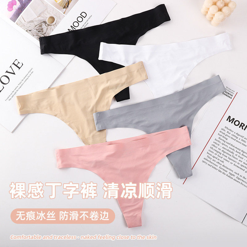 European and American tback T-pants, silk ice silk, mid-rise sports, fitness, seamless one-piece pure cotton crotch, thong panties, girls