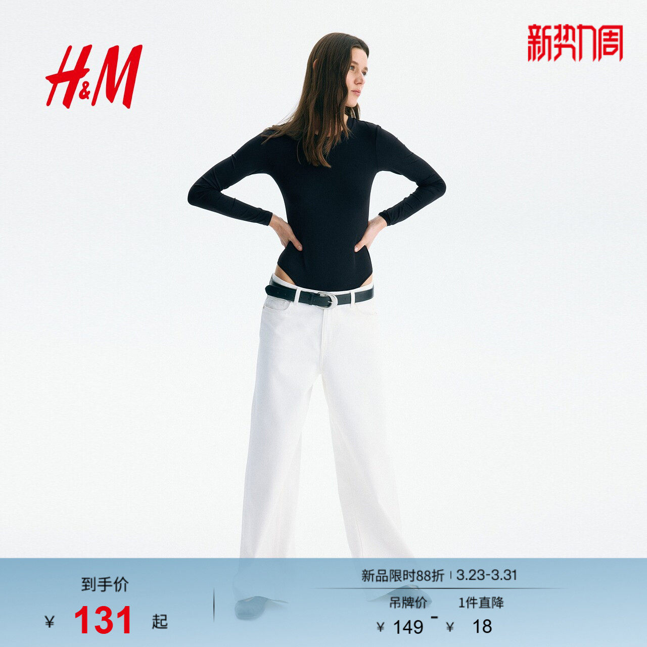 HM Women's Bodysuit Spring 2026 New Fine Fiber Long Sleeve Slim Bodysuit 1307089