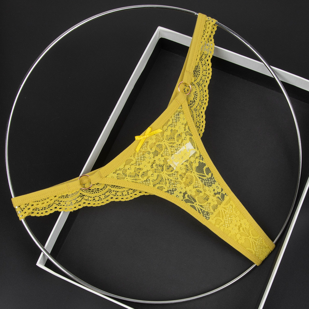 Olive yellow women's low-rise briefs lace see-through bow embellished thong