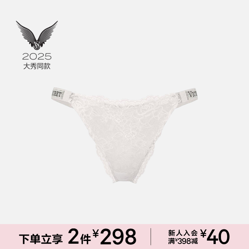 2 pieces 298|2025 Victoria's Secret Show Series Dreamy Shiny Double Thin Band Lace Low-Rise Panties Thong Women