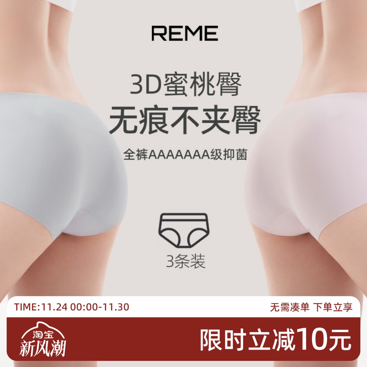 3 pieces|Banana silver leather 508Air women's underwear pure cotton breathable crotch seamless invisible fitness yoga red briefs