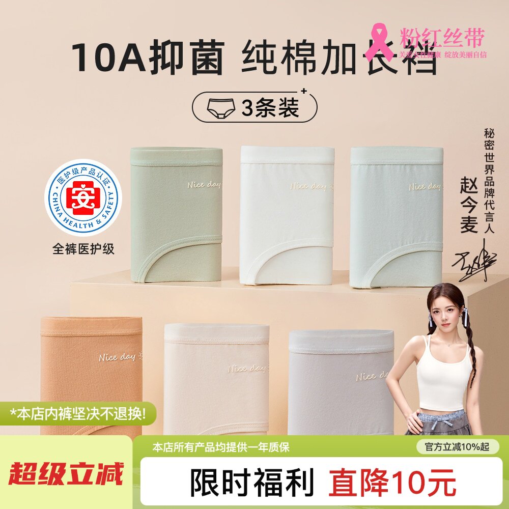 【Zhao Jinmai Same Style】SecretWorld Underwear Girls' Pure Cotton 10A Antibacterial Extended Crotch Mid-Rise Briefs
