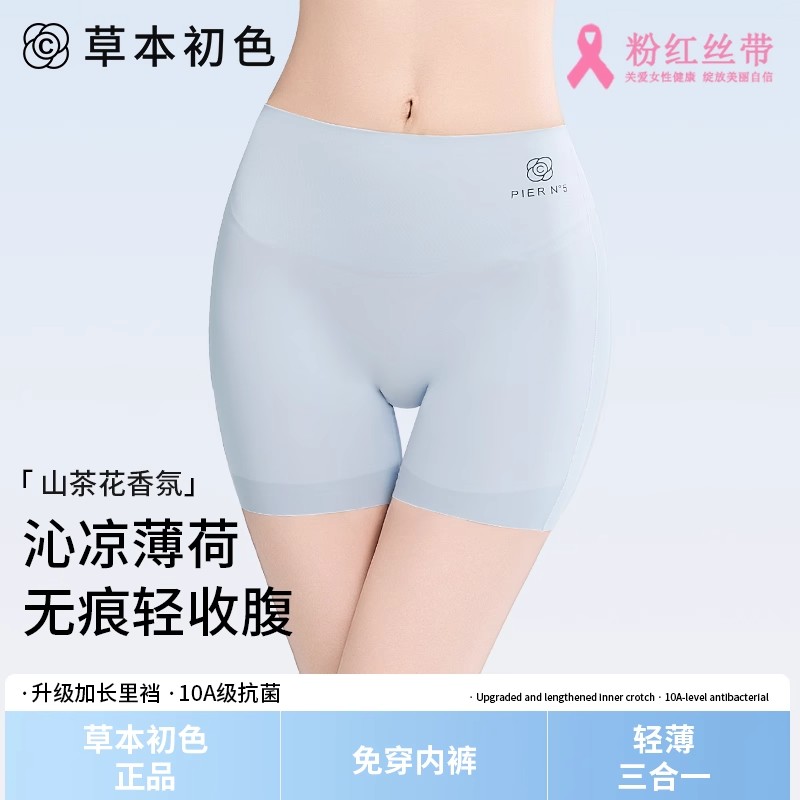 Herbal First Color 10A Antibacterial Fragrance Safety Pants Women's Summer Cool 3-in-1 No Trace No Roll Curling Anti-Light Evacuation