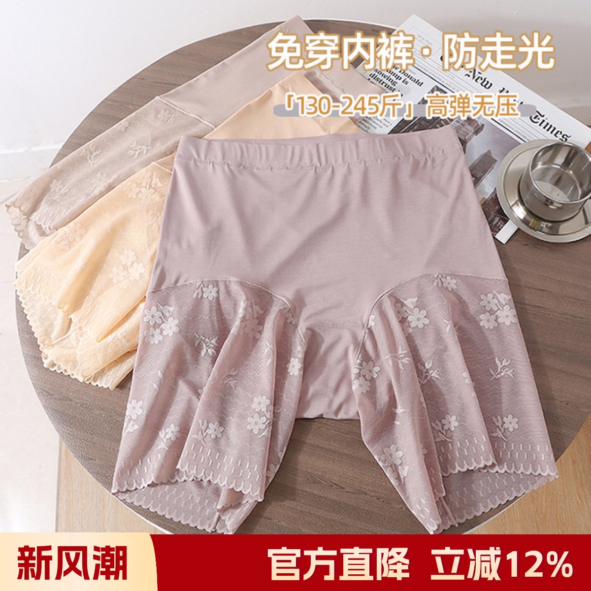 Summer thin plus-size safety pants, high waist, anti-light 2-in-1 underwear, fat mm, 200 pounds, no curled edges, flat corners