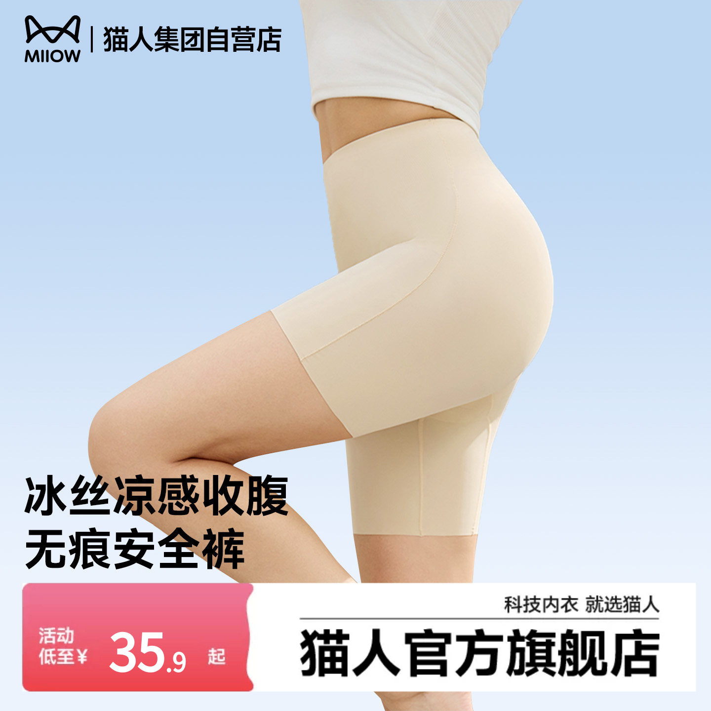 【Dabo Recommendation】Amorous Cat Invisible Liquid Foundation Safety Pants Women's Skin Tone Traceless Anti-Light Boxer Pants