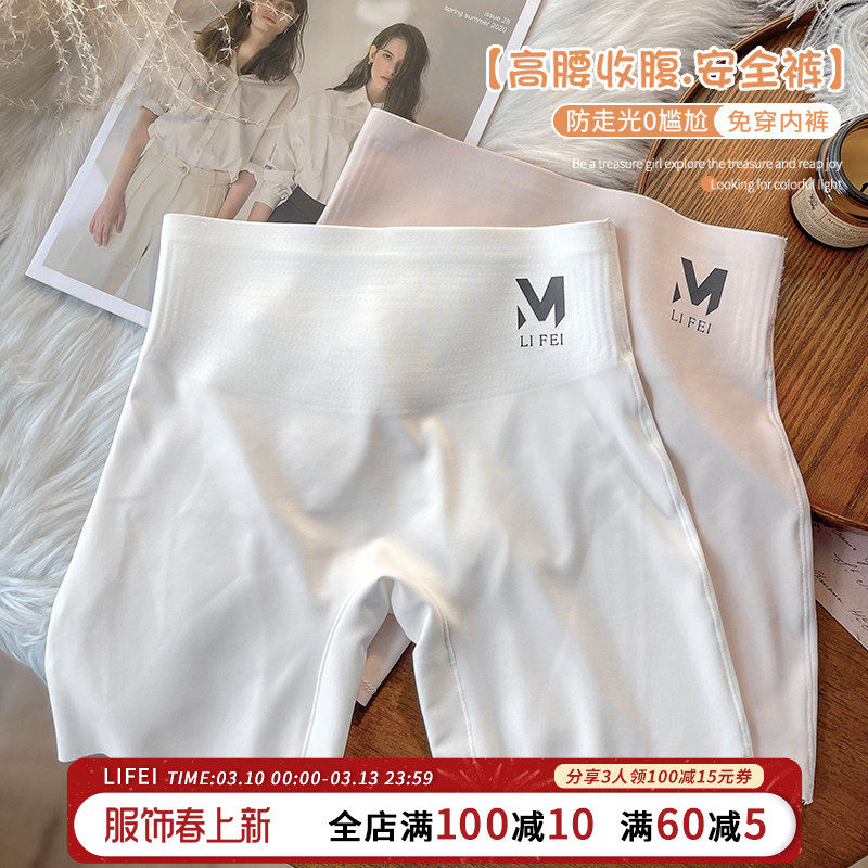 Safety pants, women's anti-light, summer ice silk seamless underwear, 2-in-1 high-waisted tummy tuck-in bottom, boxers, thin style