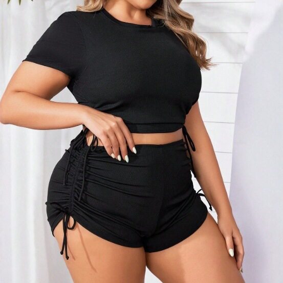 Drawstring conservative plus size swimsuit bikini Plus-size square-cut two-piece bikini