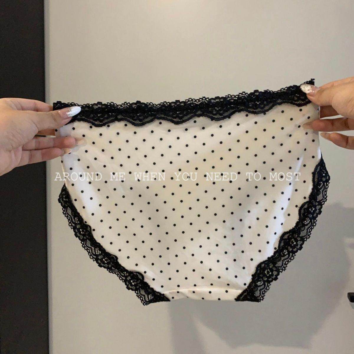 Japanese cute fresh polka dot simple lace edge pure cotton crotch student sweet breathable comfortable girl ice silk lady