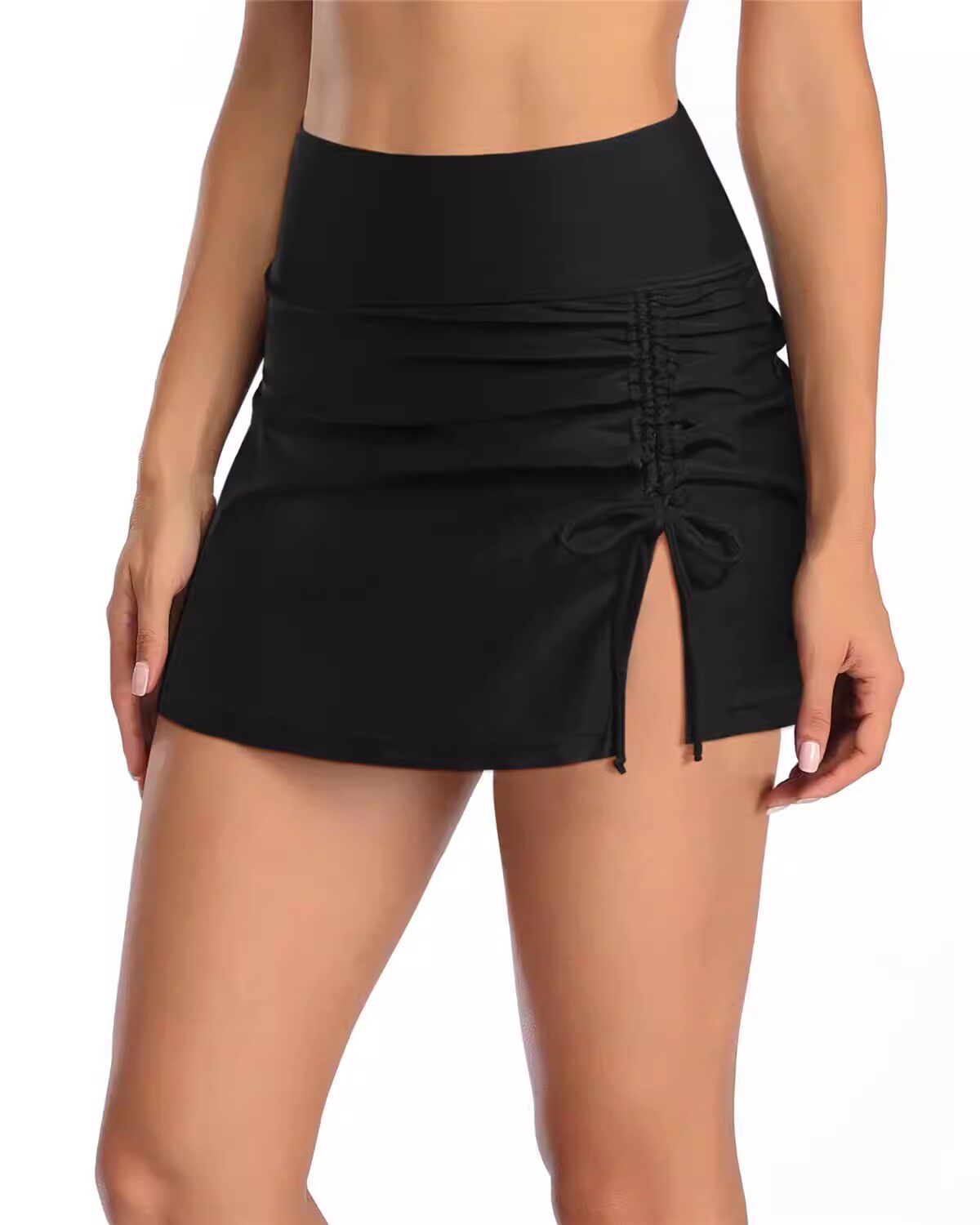 French single U women's swim trunks side lace-up boho style P40 foreign trade single corrugated weave chic with large size