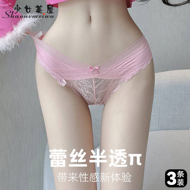Girl's beautiful house sexy red lace panties pure lust and erotic cross-legged low-waisted thin briefs