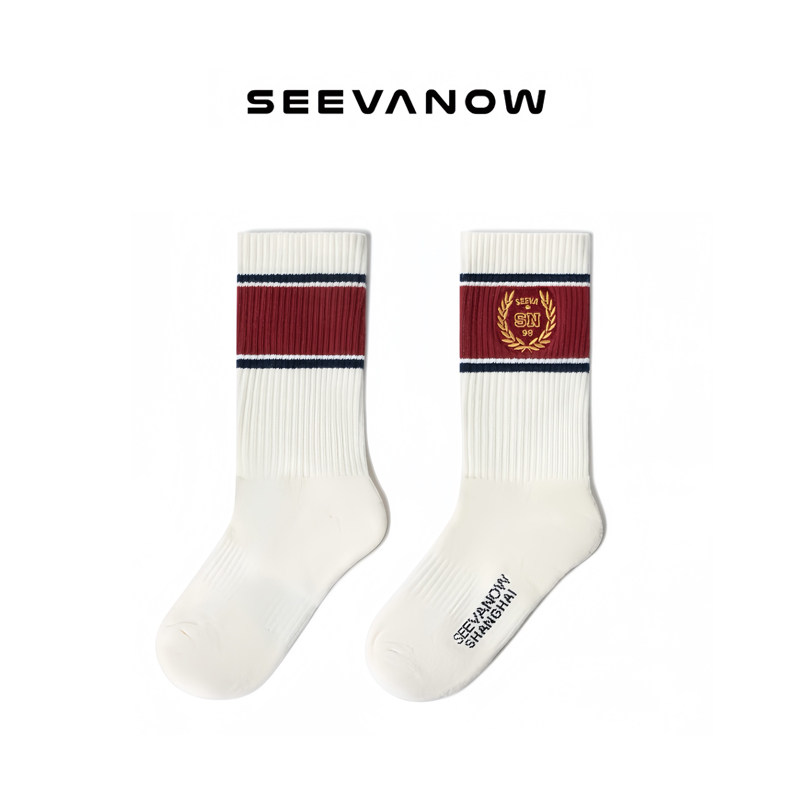 Seevanow Tennis Sports Socks Men's Size Towel Sole Sweat-Absorbing Breathable Mid-Tuber Socks Old Money Style Badminton Socks