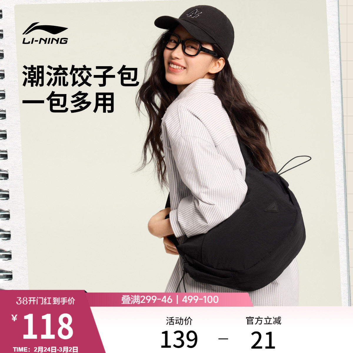 Li Ning crossbody bag women's bag 2026 new official genuine commuter casual armpit one-shoulder dumpling bag sports bag for men