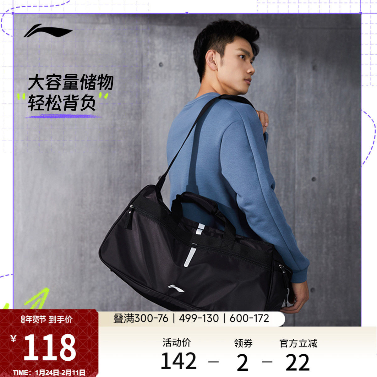 Li Ning travel bag men's fitness crossbody bag handbag large capacity sports dry and wet separation swimming bag women
