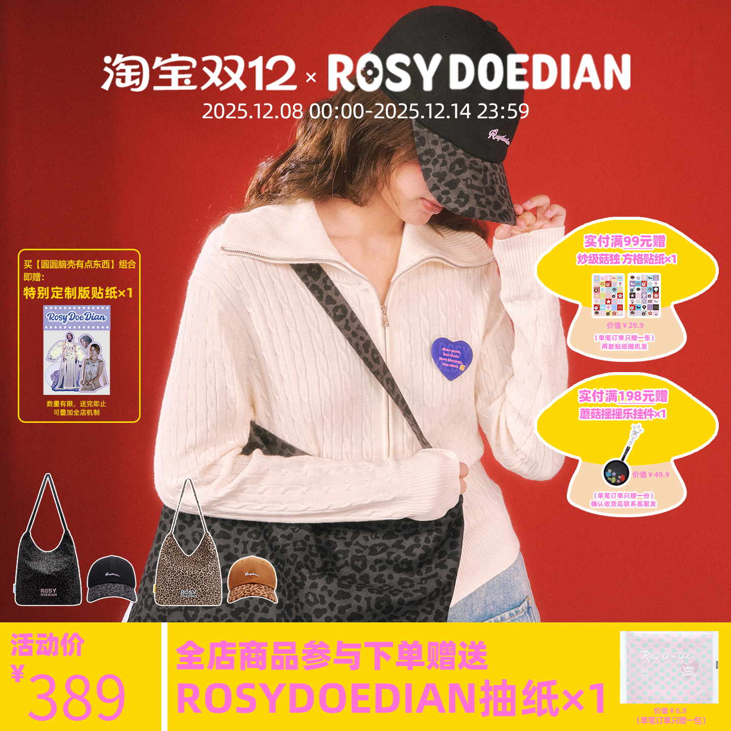 ROSYDOEDIAN round head shell something bag hat set leopard print commuter suit