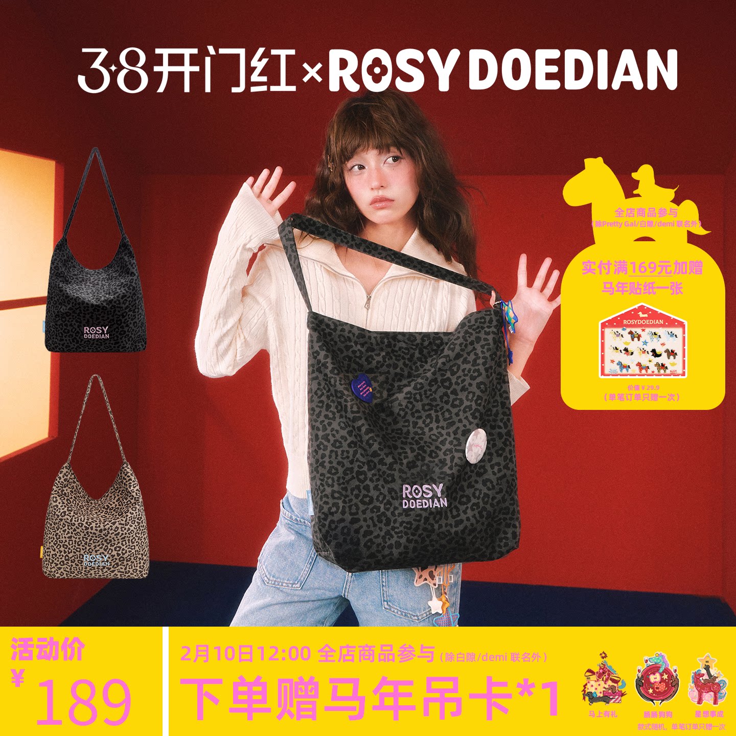 ROSYDOEDIAN round head shell has something leopard print canvas bag hat combination commuter print suit