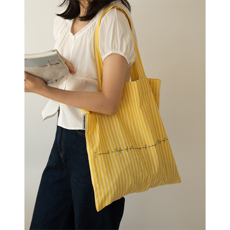MOREGOOL 24/FW Original Cheese Yellow Plum Pink Stripe Print Shoulder Canvas Bag Lightweight Canvas Bag