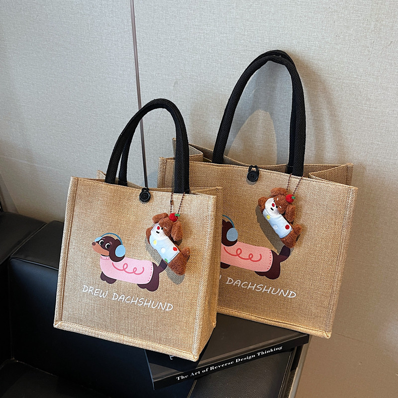 Canvas bag women's handbag large capacity tote bag 2025 new fashion outing cartoon linen tote bag