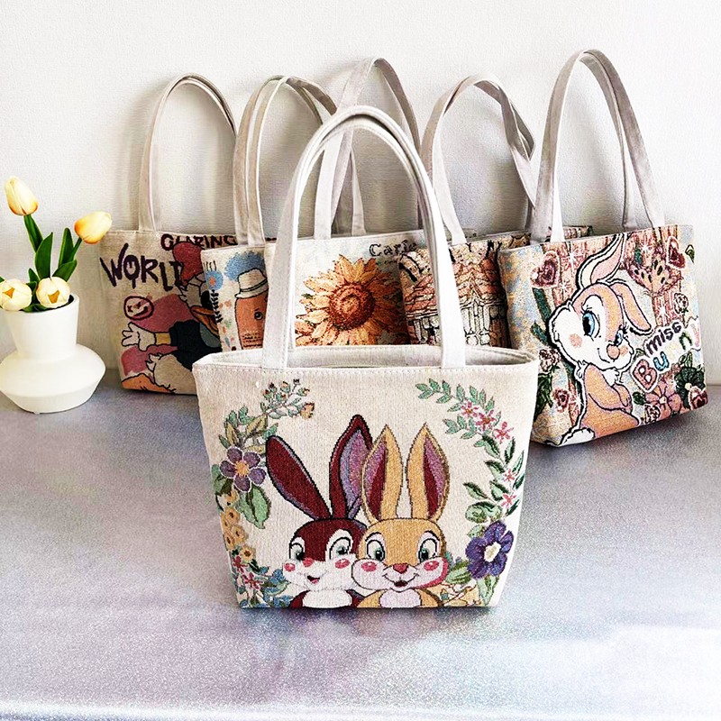 Zippered style, double-sided embroidered canvas bag, durable, washable and wear-resistant