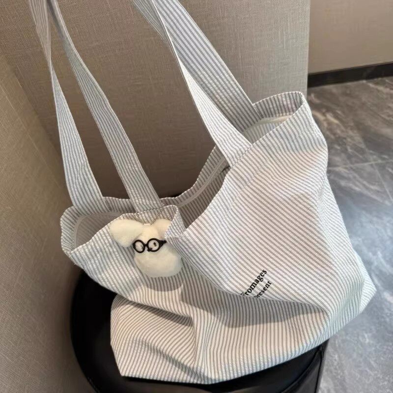Deepsea Korean version ins style striped large capacity canvas bag women's versatile shoulder bag tote canvas bag