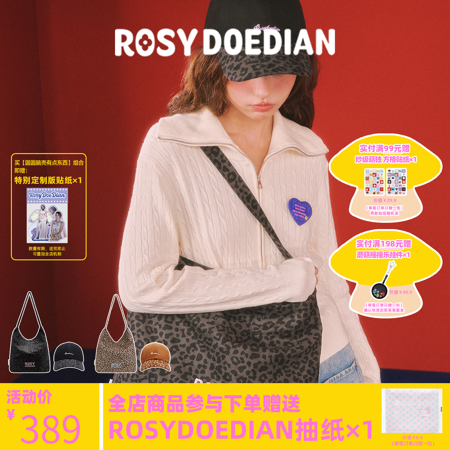 ROSYDOEDIAN round head shell has something leopard print canvas bag hat combination commuter print suit