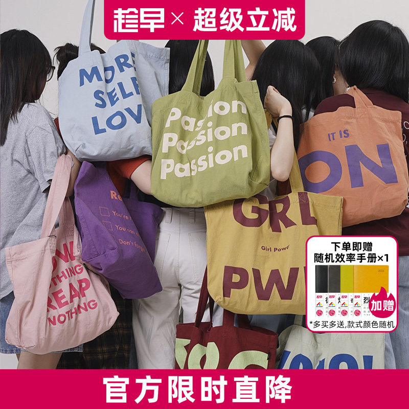 Attitude as soon as possible, washed cotton canvas bag, fashion and versatile quotes, large capacity one-shoulder hand-held crossbody bag, tote bag