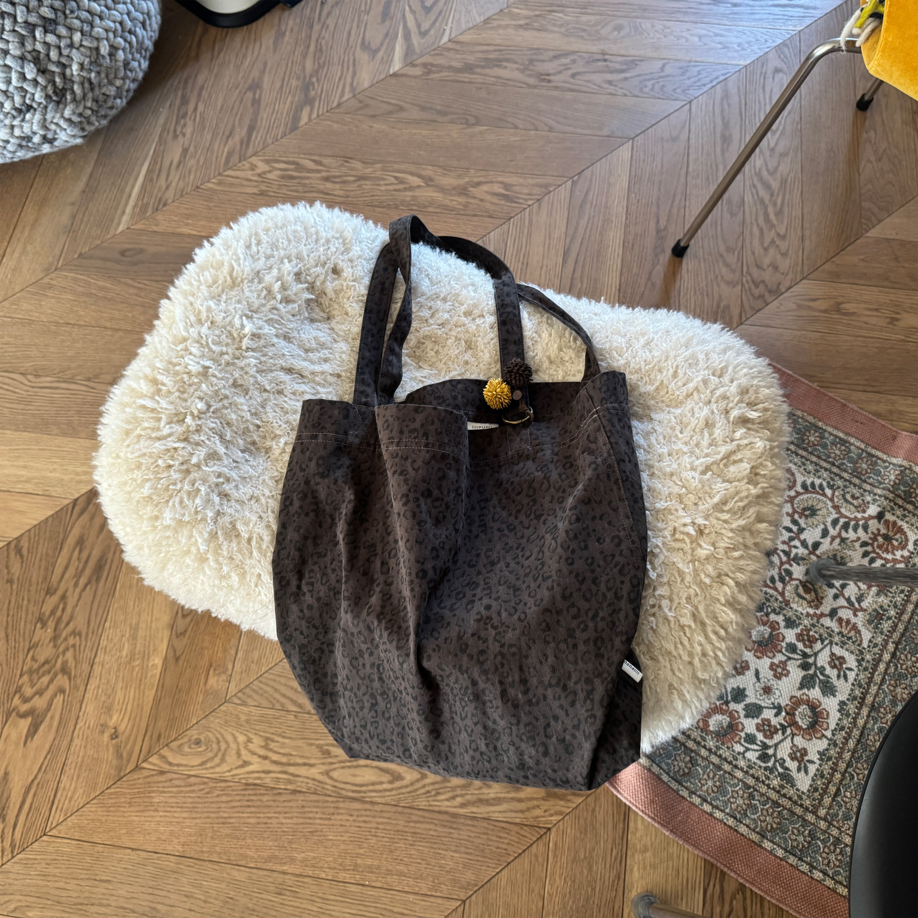 iiiipupu25AW thick version large capacity commuter dark coffee leopard print shoulder canvas bag + ball accessories