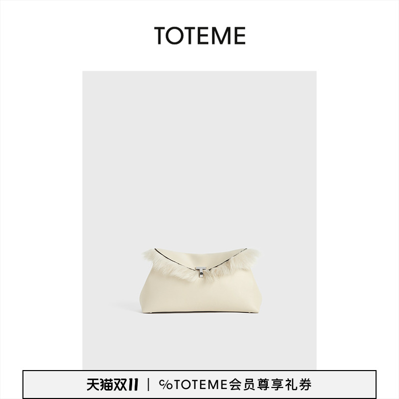 【Discount Selection】TOTEME Women's Bag Beige Spliced Shearling Leather T-Lock Clutch