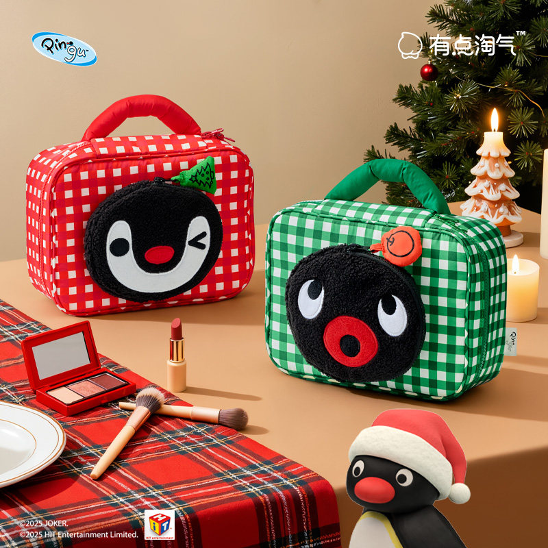 A little naughty Pingu travels with portable toiletry bags and cosmetic bags to store coin purses