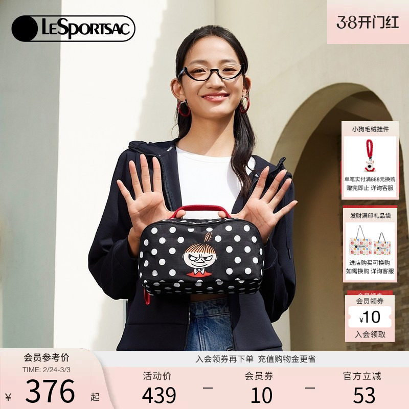 LeSportsac new Moomin co-branded classic polka dot dirt-resistant large opening large capacity cosmetic bag for women