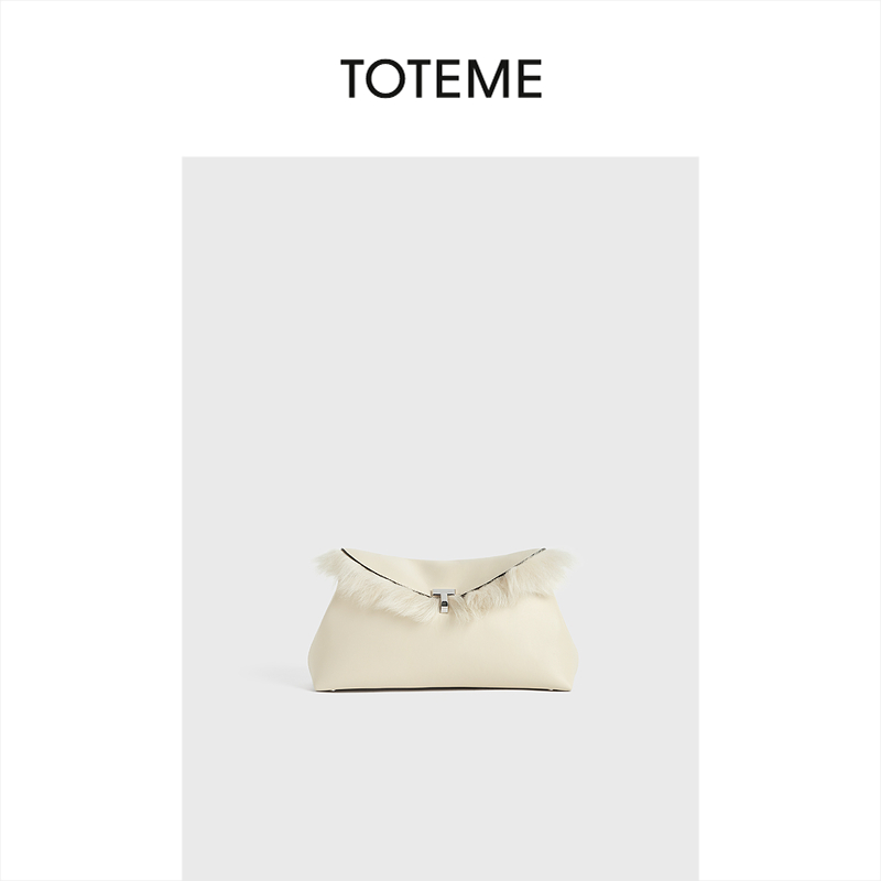 TOTEME women's bag beige panelled shearling leather T-lock clutch