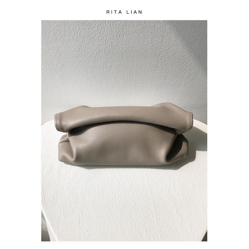 RitaLian original design niche Nordic casual literature lazy casual fashionable curled leather clutch