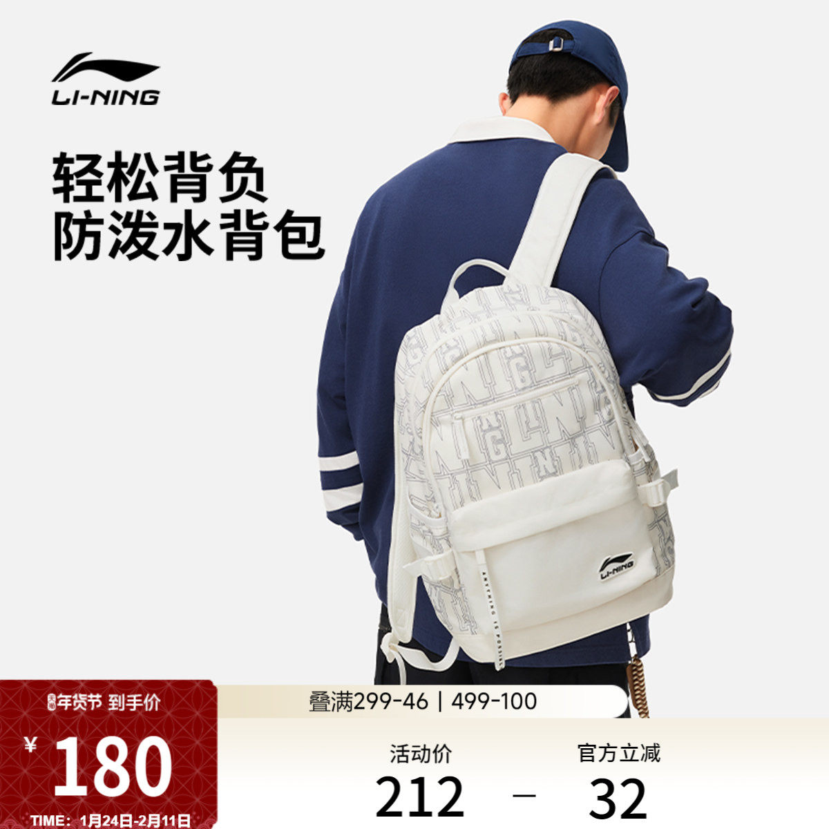 Li Ning backpack for men and women has the same official design, large capacity student schoolbag, travel travel sports backpack