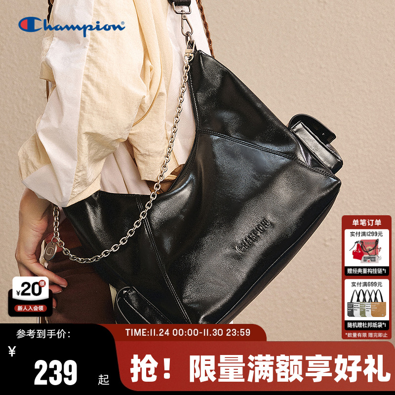 Champion Shoulder Bag Women's 2025 Fall/Winter New Motorcycle Bag Men's Couple Casual Chain Crossbody Bag