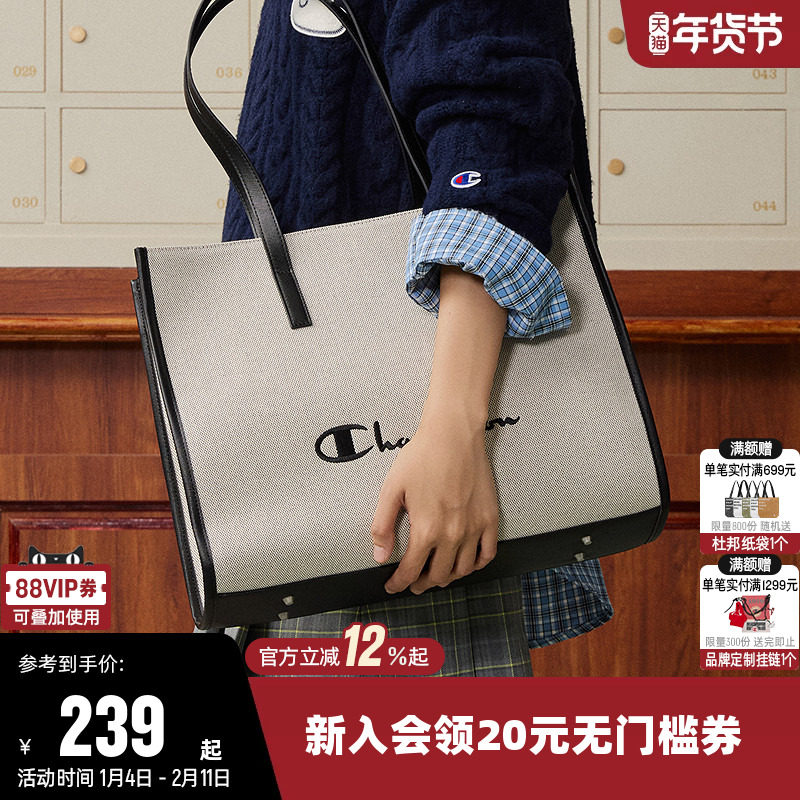Champion Champion Shoulder Bag 2026 Spring New Men's and Women's Couple Fashion Satchel Tote Bag Reversible Multi-Back