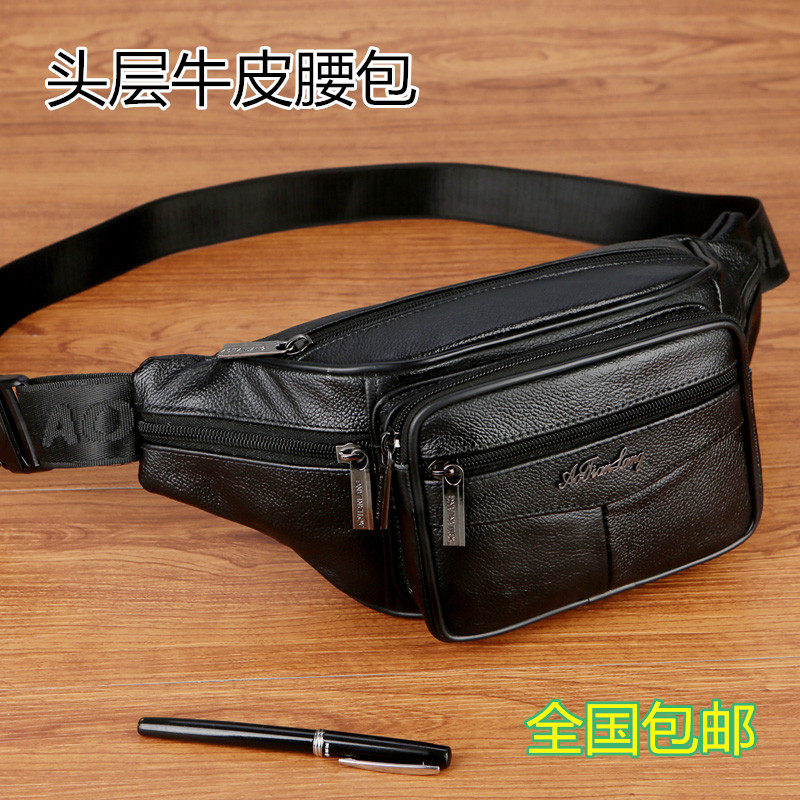 Waist bag men's leather multifunctional outdoor running fitness bag large capacity real cowhide business diagonal across mobile phone bag women