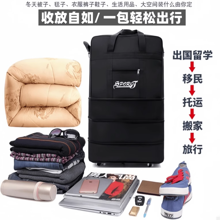 Back-to-school quilt bag with wheels spinner travel large capacity luggage bag multifunctional home storage bag