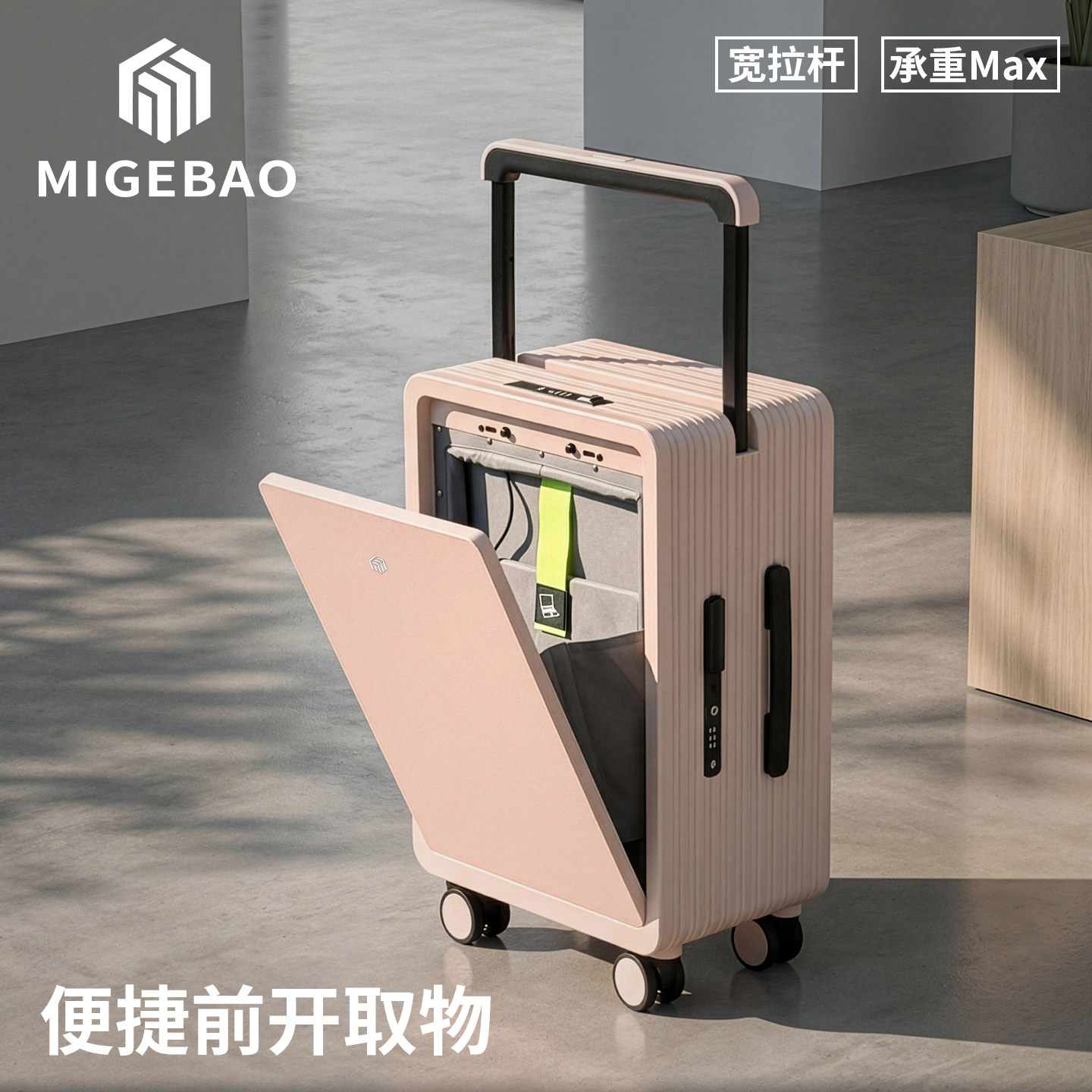 Front opening suitcase, girl's high-value wide trolley suitcase, women's lightweight 20-inch boarding suitcase, free check-in