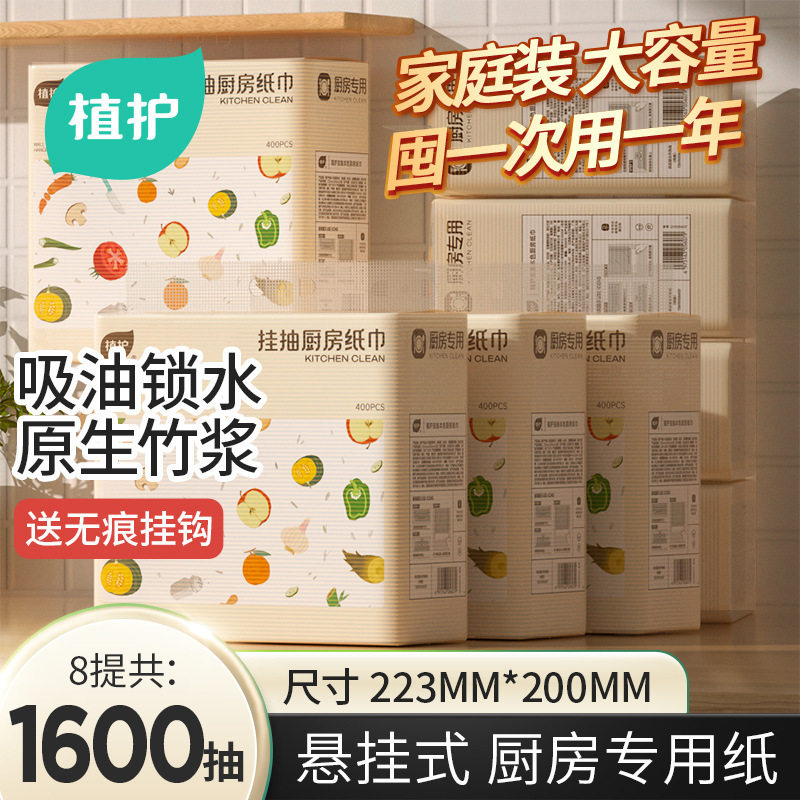 Plant protection kitchen paper 8 whole boxes of hanging kitchen paper absorbent and oil-absorbing paper 200 draws large packs of kitchen paper towel batches