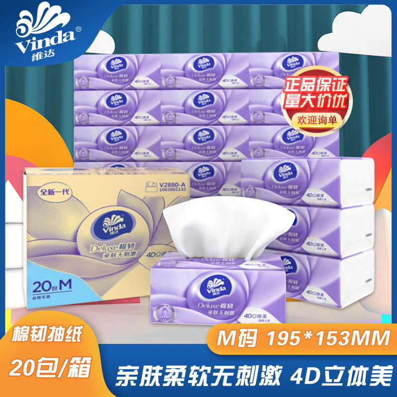 Vinda Paper Drawing Three-Dimensional Beauty 4D Embossed Paper Towel Toilet Paper Enlarged M Size 3 Layers 100 Draw 20 Packs V2880-A Real