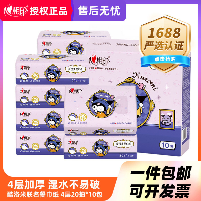 Heart Print Kuromi Draw Paper 20 Draw Four-Layer Paper Towel Toilet Paper Napkin Portable