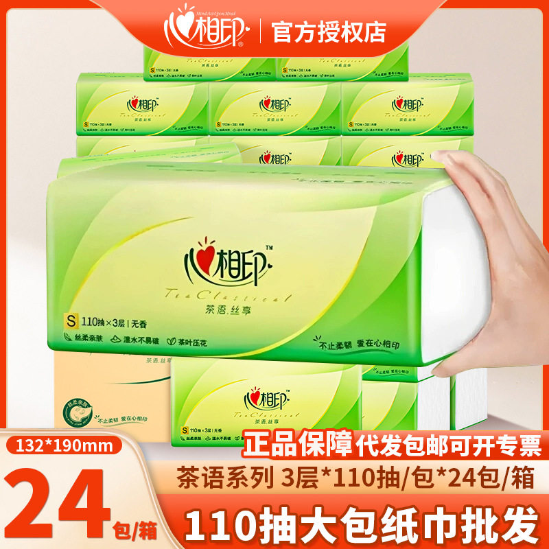 Xinxiangyin tea embossed paper towels 110 draw large bags of paper for household use wet sanitary paper napkins whole box batch