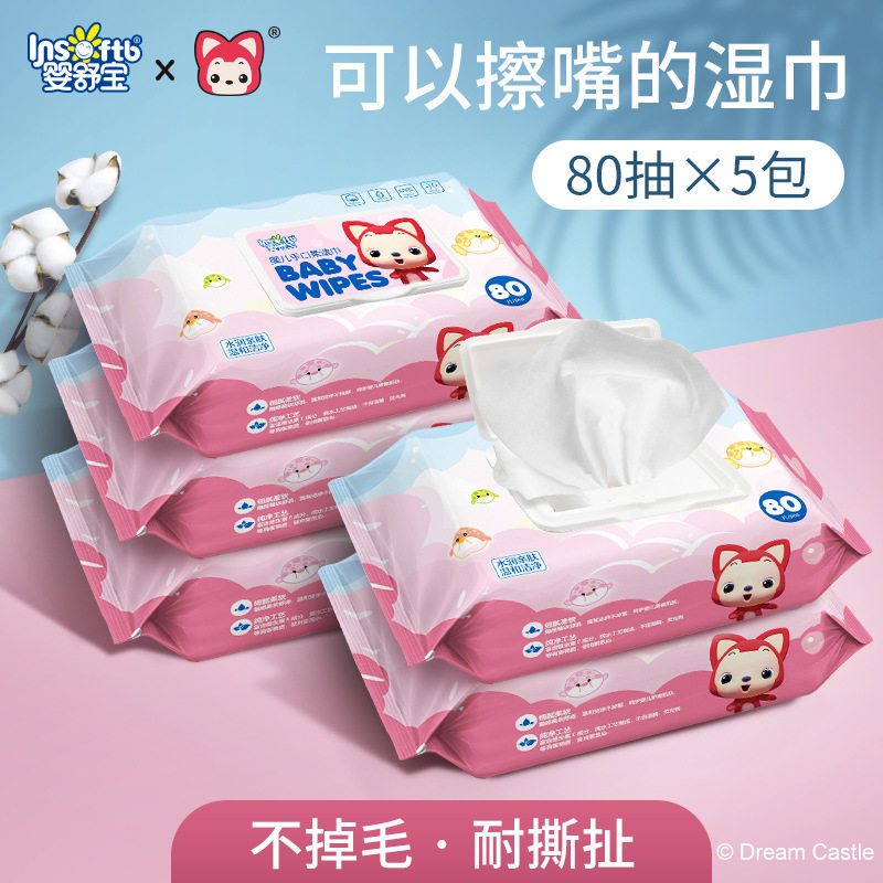 Baby Shubao hand and mouth fart special family affordable pack 80 draws 5 packs of wet towels can be used for newborns and adults can be refreshed and fragrance-free