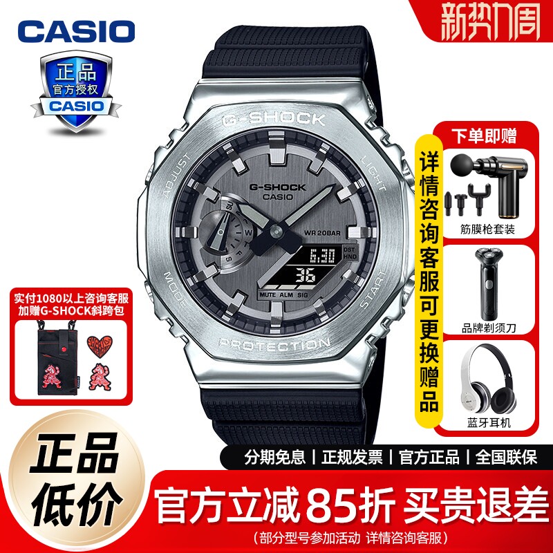 【Gift】Casio flagship store GBM-2100 metal Bluetooth solar sports watch men's G-SHOCK