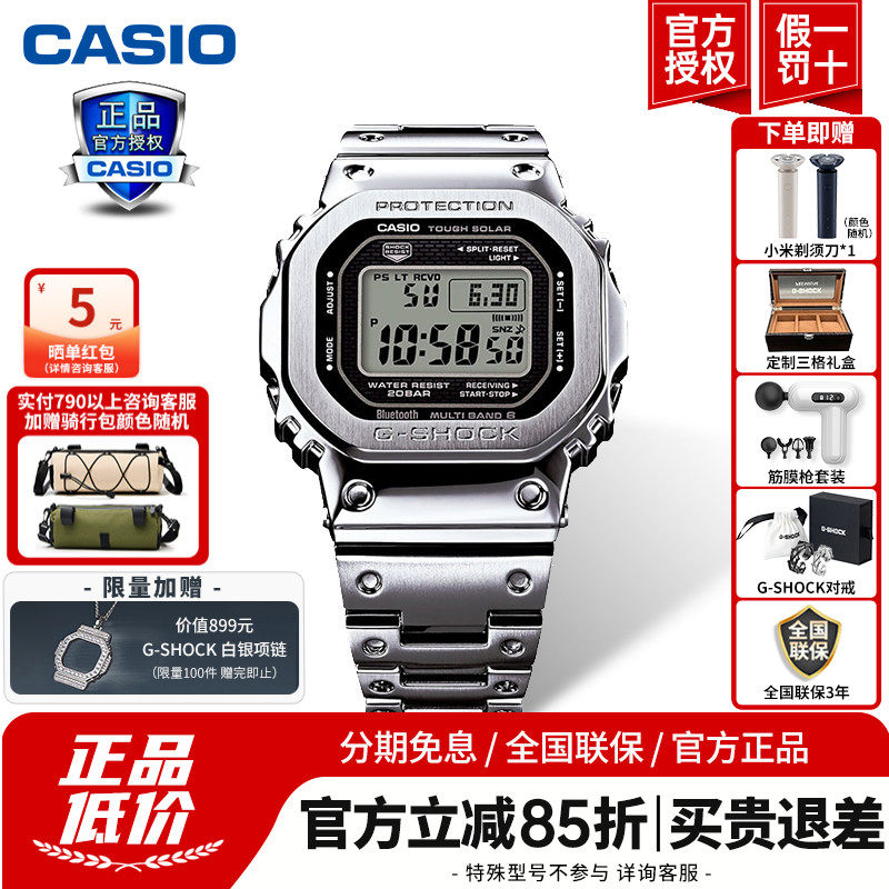 Casio Watch Men's GMW-B5000 Official Genuine Metal Small Square Silver Brick G-SHOCK Small Gold Nugget Silver Bar