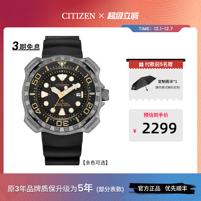 Citizen flagship store official website genuine new little turtle Shubo Titanium Light Kinetic Men's Diving Watch BN0228