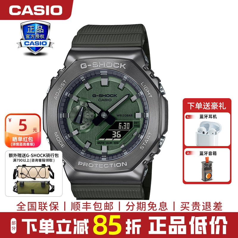 Casio official flagship store GM-5600YM/GM-2100YM gold and silver small square sports shockproof watch