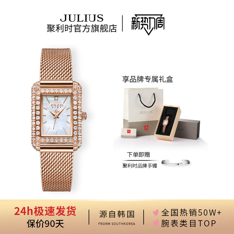 Julis South Korea high-end light luxury niche zircon inlaid small square watch waterproof quartz professional women's watch JS046