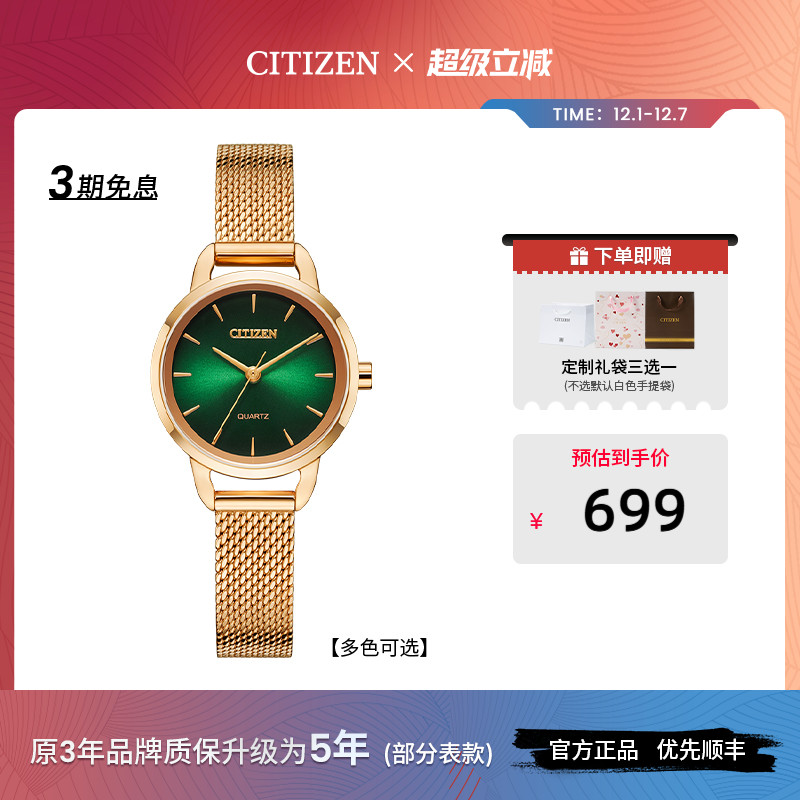 Citizen flagship official website genuine ins style JT series trendy fashion small green watch quartz watch female EQ3003